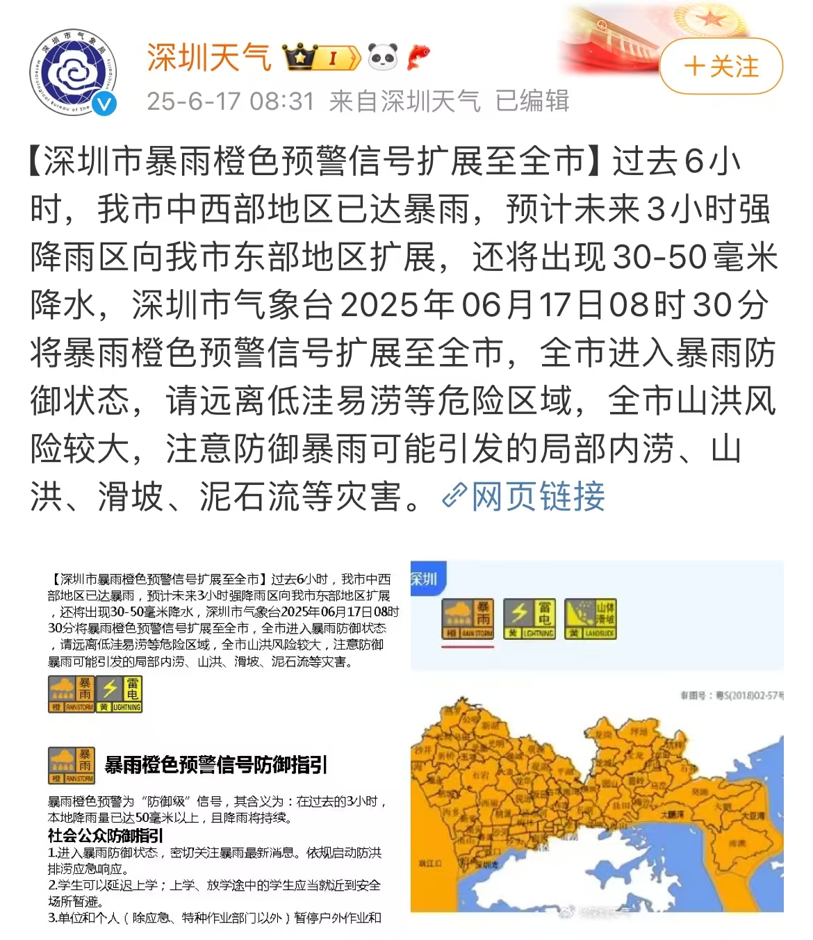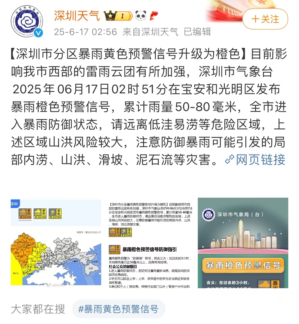 深圳气象局回应:本次预报已经非常准确,橙色预警下即可延迟上学