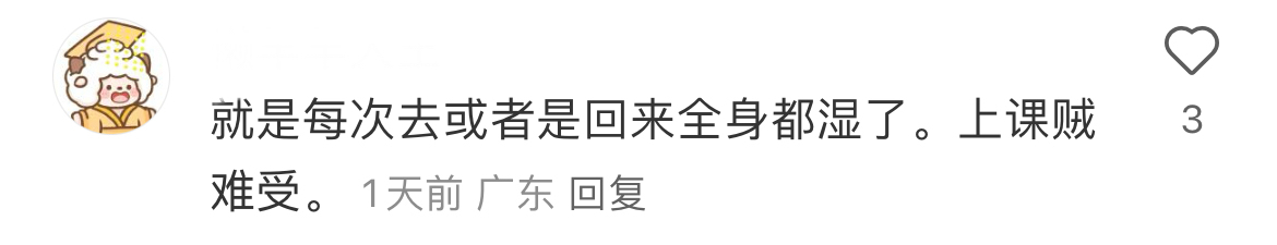 “就是每次去或者是回来全身都湿了。上课贼难受”